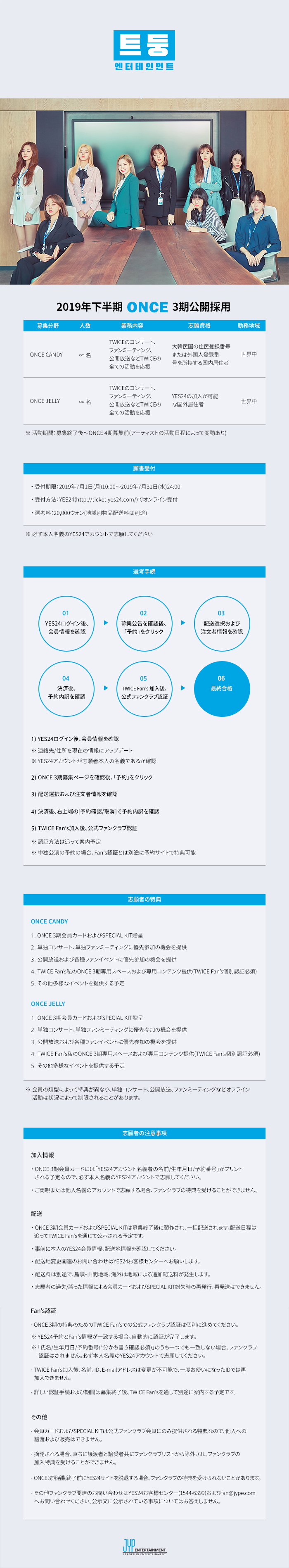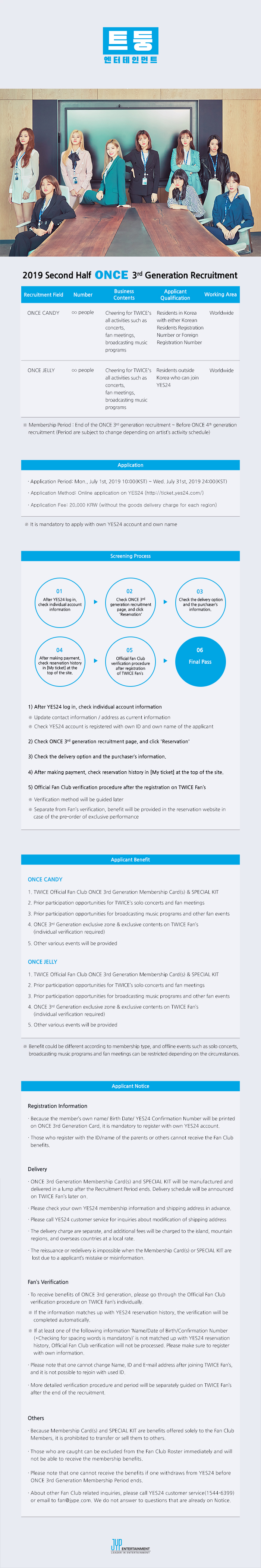 트둥엔터테인먼트 2019 하반기 ONCE 3기 공개채용